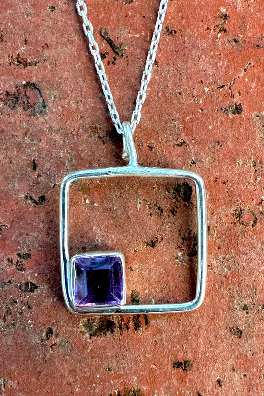 "Out of the Box" Square Amethyst Sterling Silver Necklace