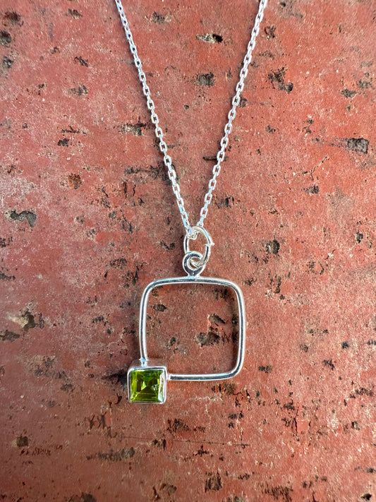 "Out of the Box" Square Peridot Sterling Silver Necklace