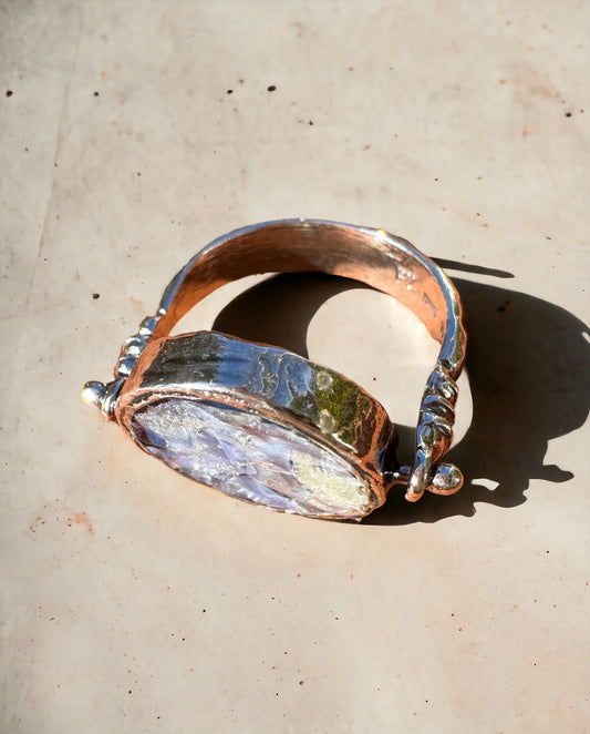"The Flip Ring" Two-Sided Ancient Roman Coin & Ancient Roman Glass with Sterling Silver