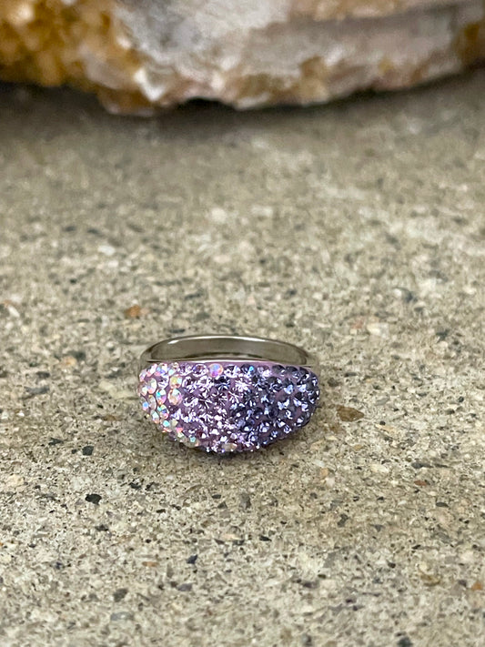 Black Turquoise Purple Austrian Crystal Sterling Silver Ring