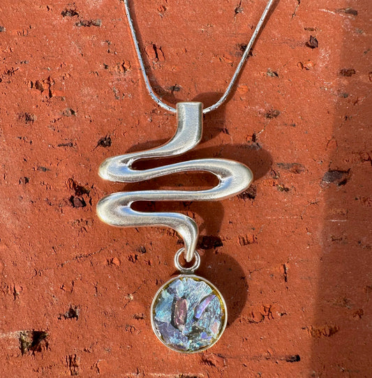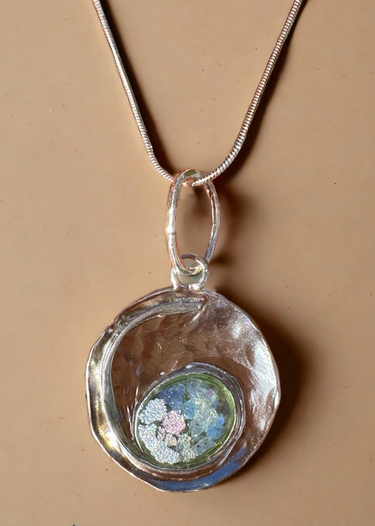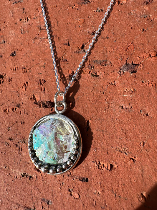 Ancient Roman Glass Round Sterling Silver Necklace