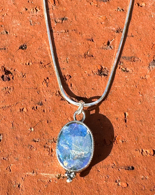 Ancient Roman Glass Sterling Silver Necklace