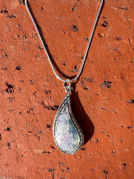 Teardrop Ancient Roman Glass Sterling Silver Necklace (Copy)