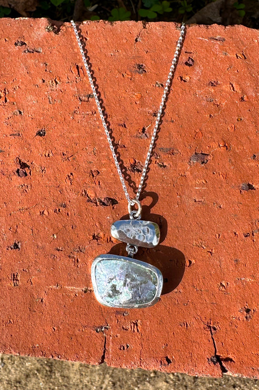 Ancient Roman Glass Hammered Sterling Silver Necklace