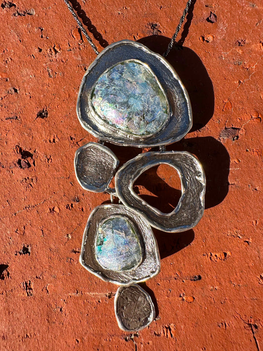 Ancient Roman Glass Freeform Hanging Sterling Silver Necklace