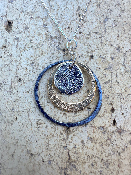 3 Circles, 2 Oxidized Circles & Gold Plated Circle Necklace