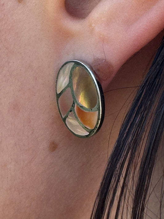 POST OVAL BROWN MOTHER OF PEARL STERLING EARRINGS