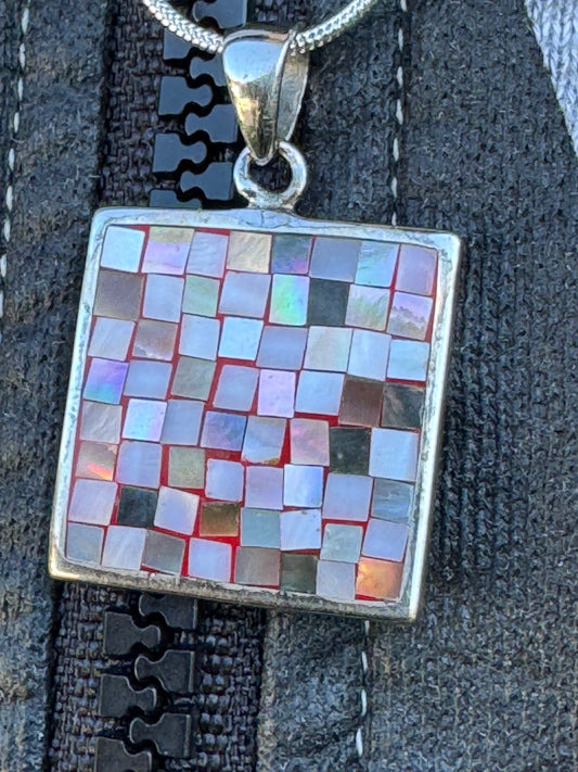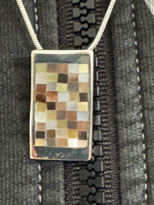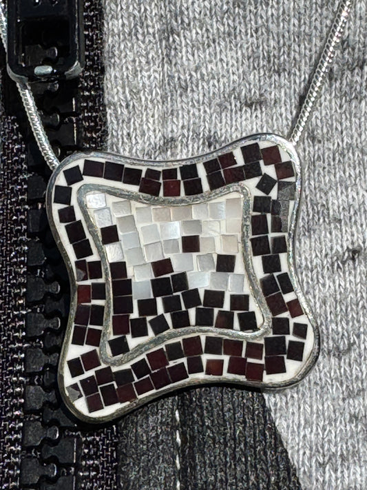 SQUARE BROWN AND WHITE MOSAICE NECKLACE