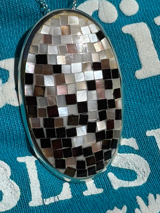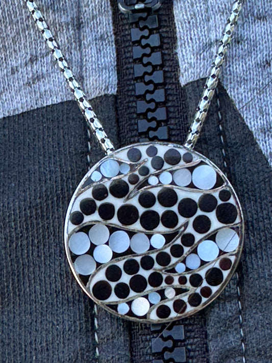 BIG ROUND BLACK AND WHITE MOTHER OF PEARL STERLING NECKLACE
