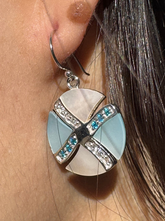 LIGHT BLUE AND WHITE GLITSY STERLING EARRINGS