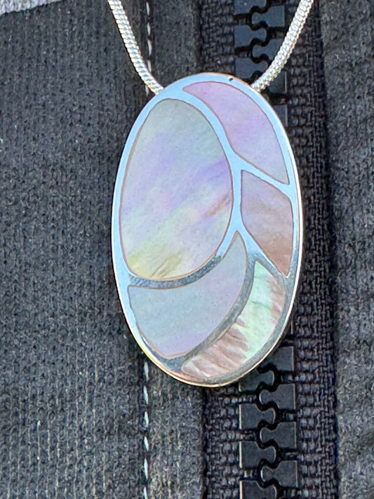Big “Eye of Shiva” White Mother of Pearl on Sterling Silver Necklace