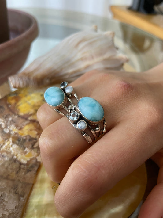 Blue Topaz, Pearl & Larimar Harmony Earrings