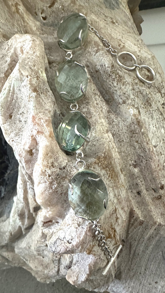 Green Obsidian Faceted Oval with Garnet, Amethyst, Blue Topaz Sterling Silver Bracelet