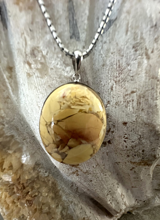 Wood Agat on Heavy Chain Sterling Silver Necklace