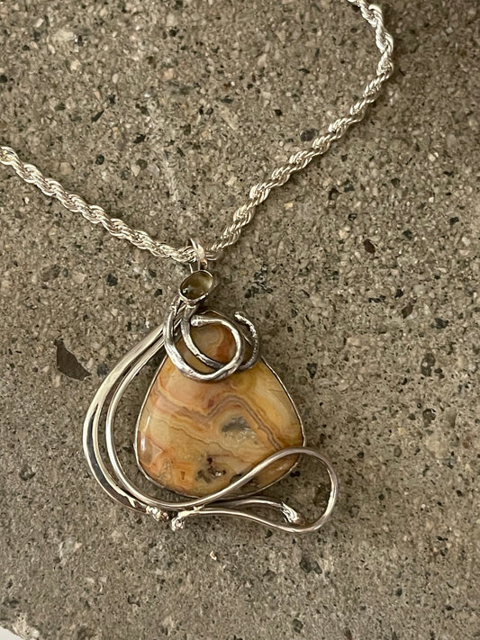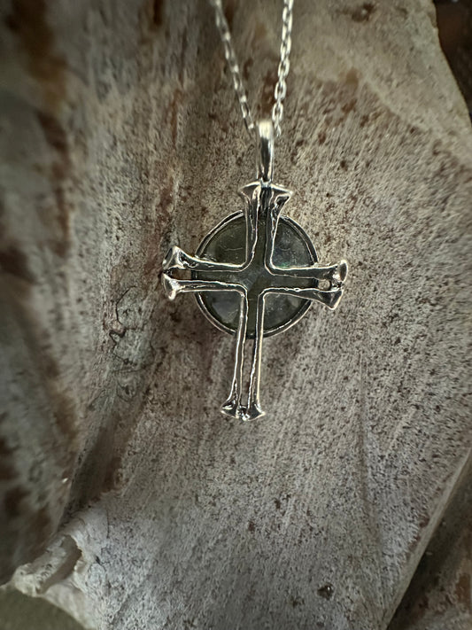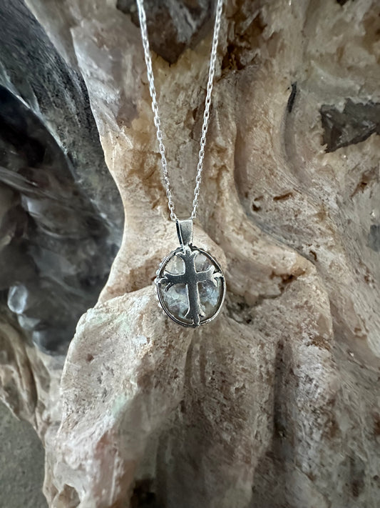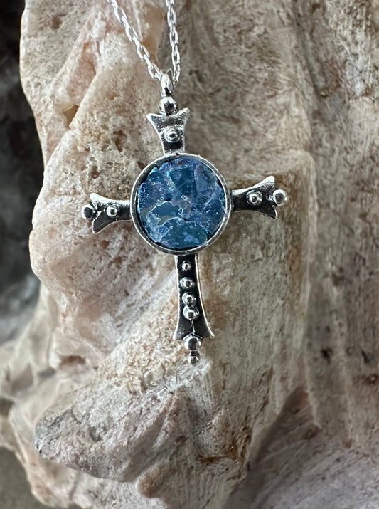 Ancient Roman Glass Round Cross Sterling Silver Necklace