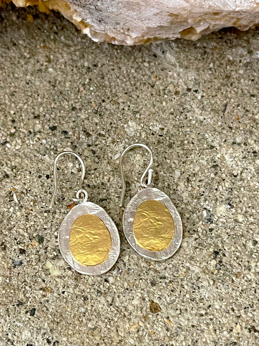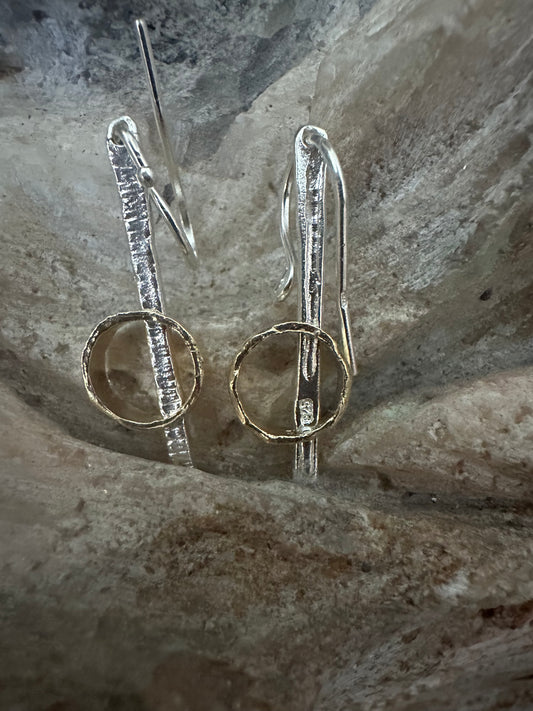 Gold Plated Loop & Sterling Silver Stick Earrings