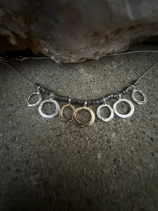 Silver Wire & Gold Plated & Oxidized Circles Sterling Silver Necklace