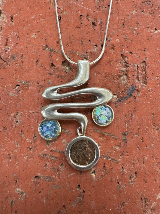 Ancient Roman Coin & Roman Glass Sterling Silver Necklace
