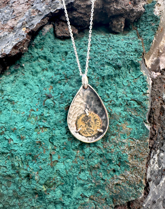 Ancient Roman Coin Sterling Silver Pendant (on Chain)