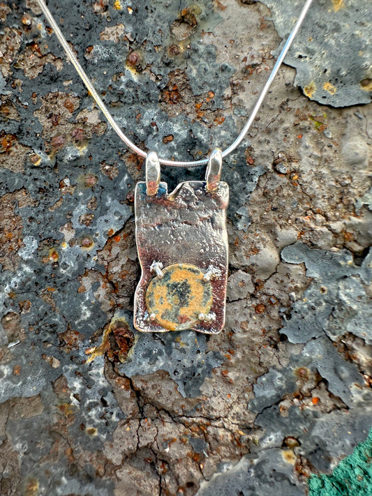 Mosaic Blue, Brown, Purple & Green Big Round Sterling Silver Necklace (Heavy Chain)