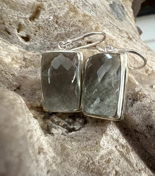 Green Obsidian Faceted Rectangle Sterling Silver Earrings