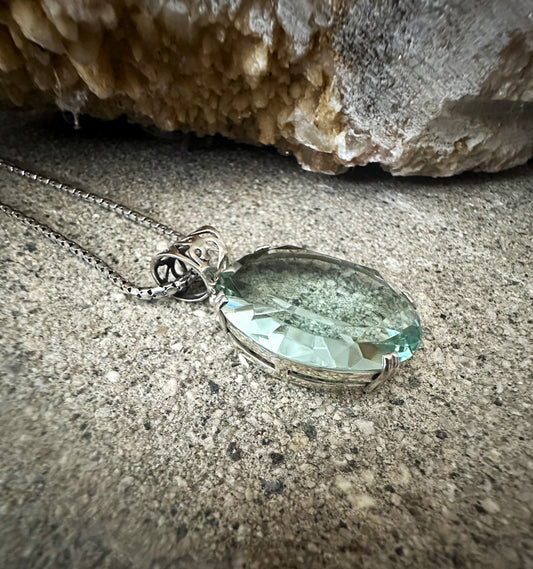 Green Obsidian Faceted Oval Sterlng Silver Necklace