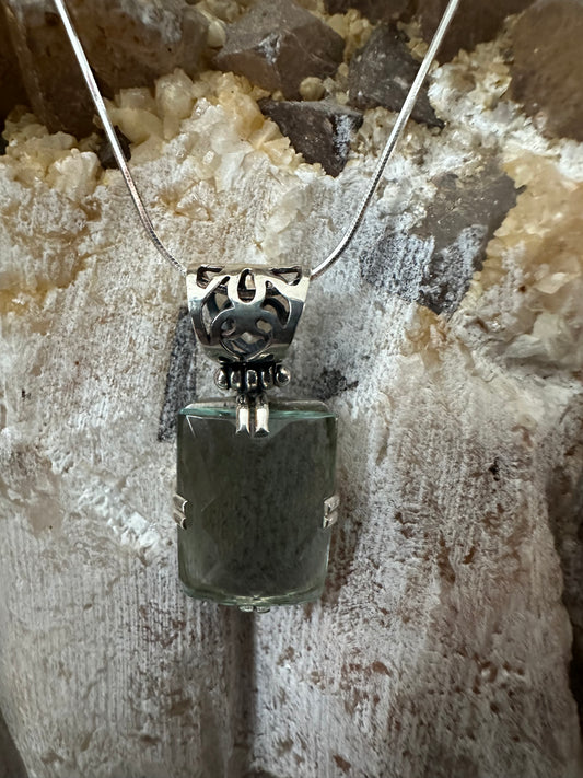 Grene Obsidian Faceted Rectangle Sterling Silver Necklace