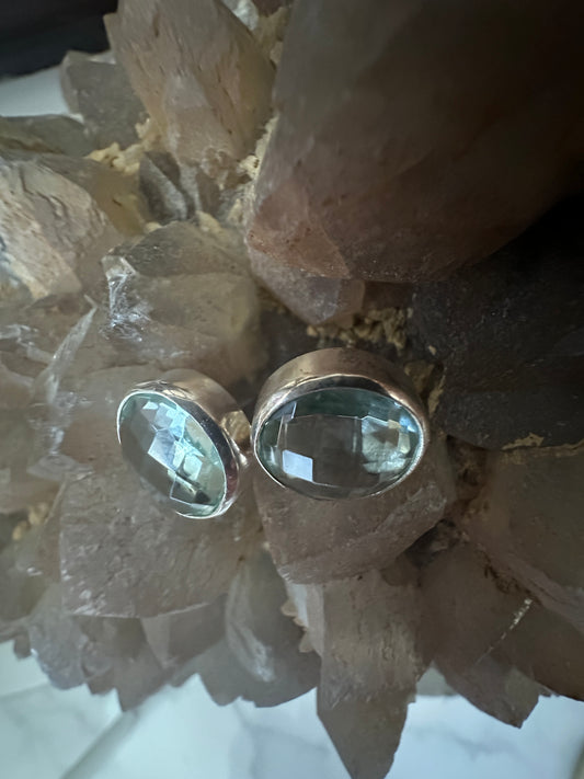 Light Green Obsidian Faceted Round Sterling Silver Earrings