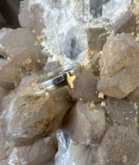 Solid Gold Bar On Decorative Sterling Silver Band Ring