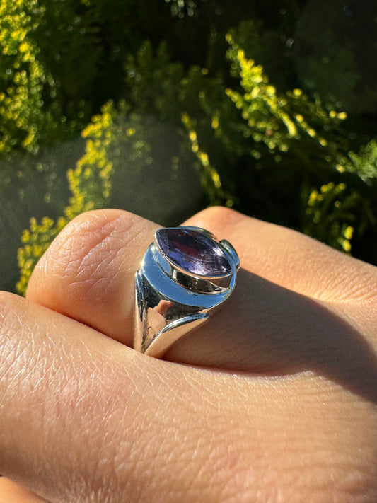 Black Turquoise Purple Austrian Crystal Sterling Silver Ring