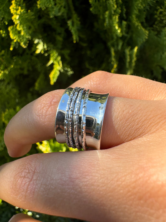Blues & Tan Austrian Crystal Sterling Silver Ring