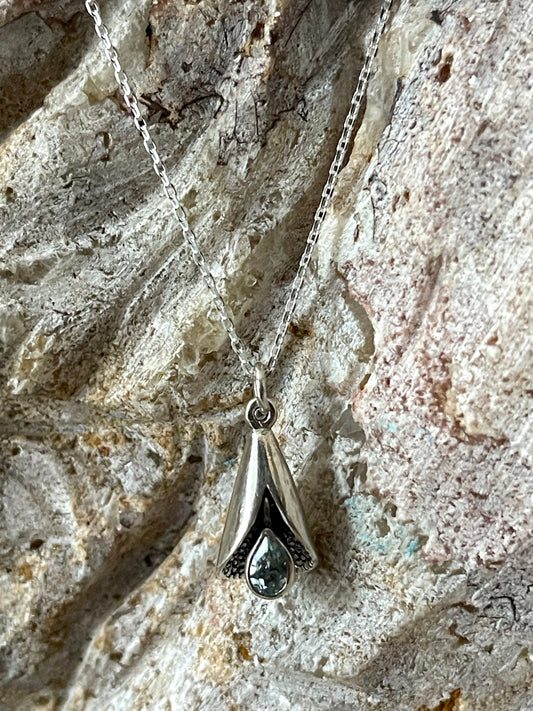 Blue Topaz Oxidized Leaf Sterling Silver Necklace