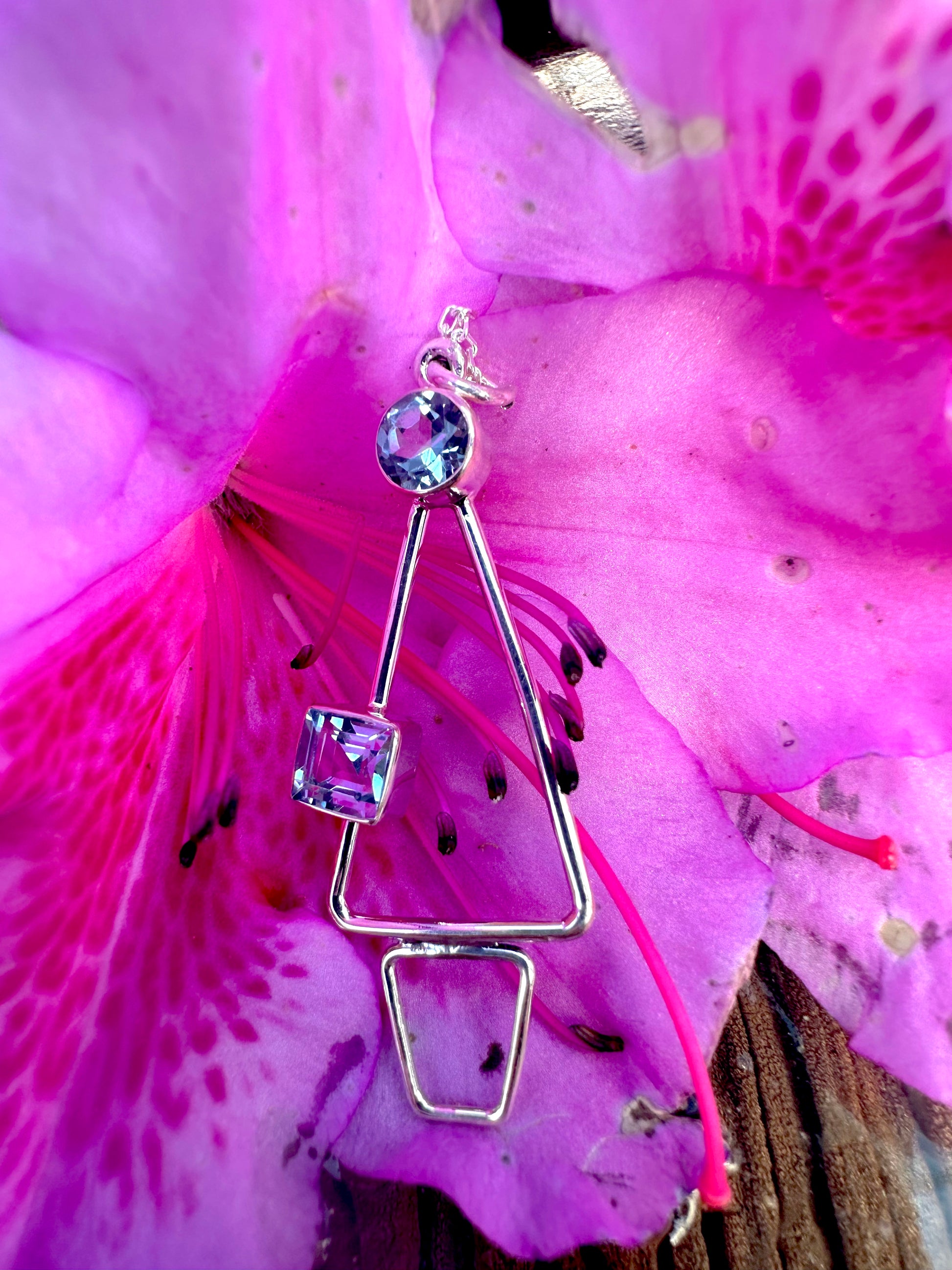 Asymmetrical 2 Blue Topaz Sterling Necklace