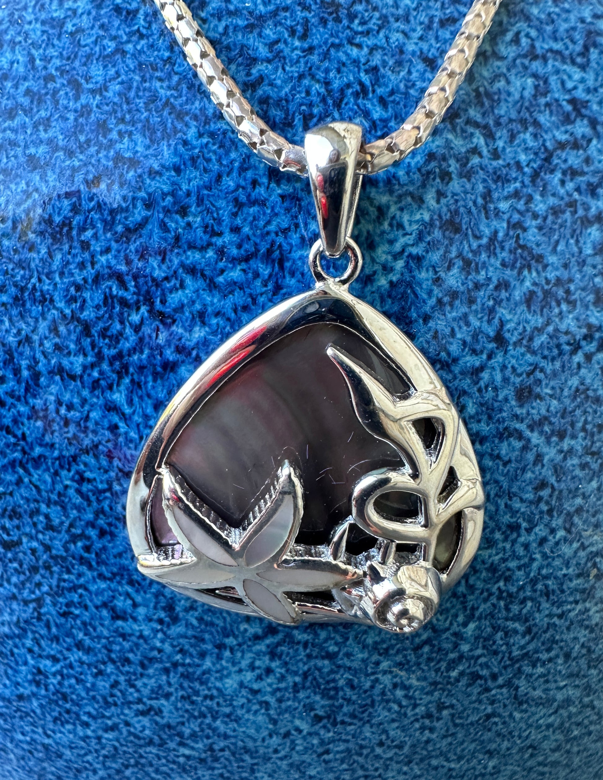 Big Sea star brown mother of pearl sterling pendant on heavy line chain necklace.