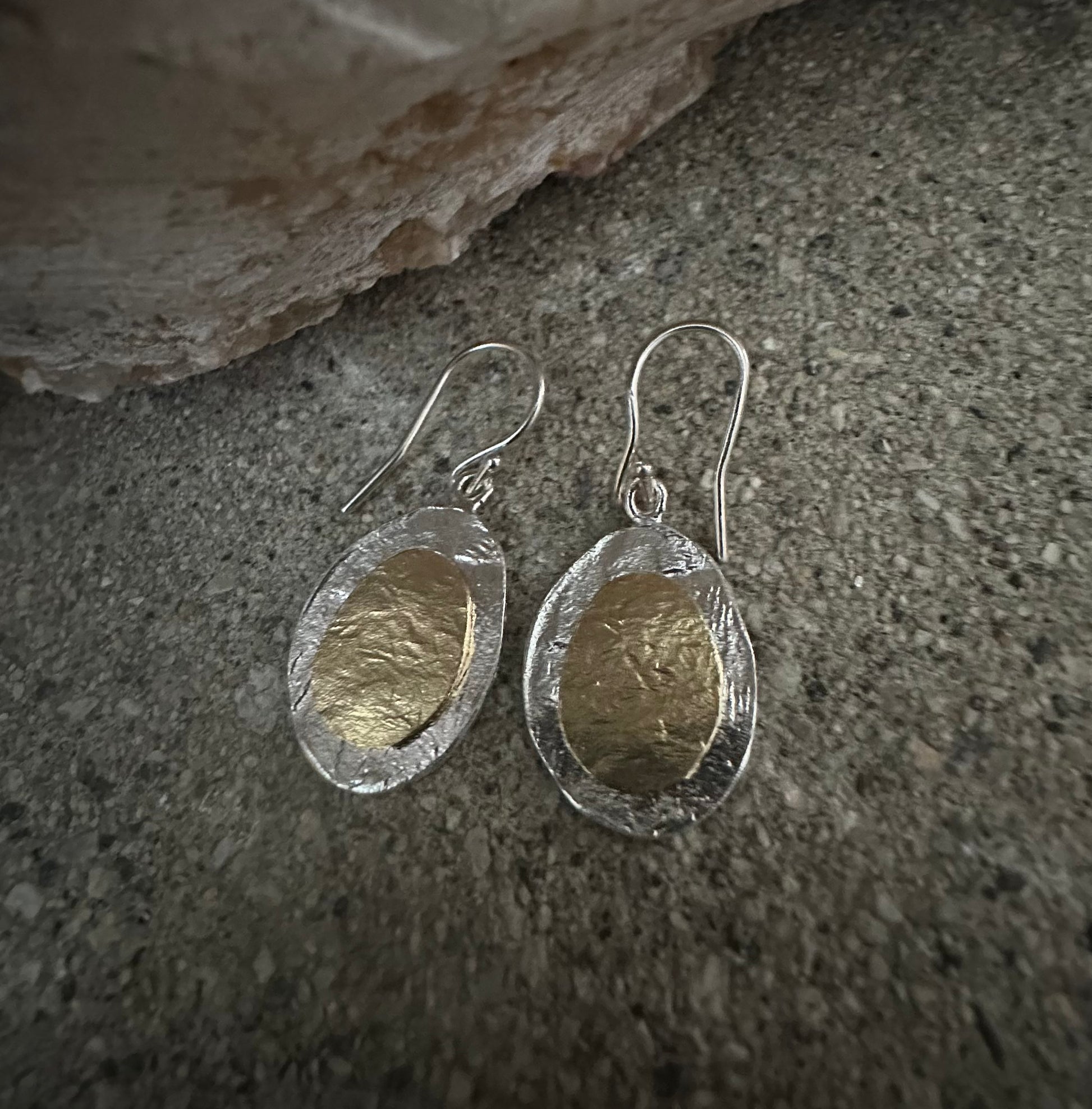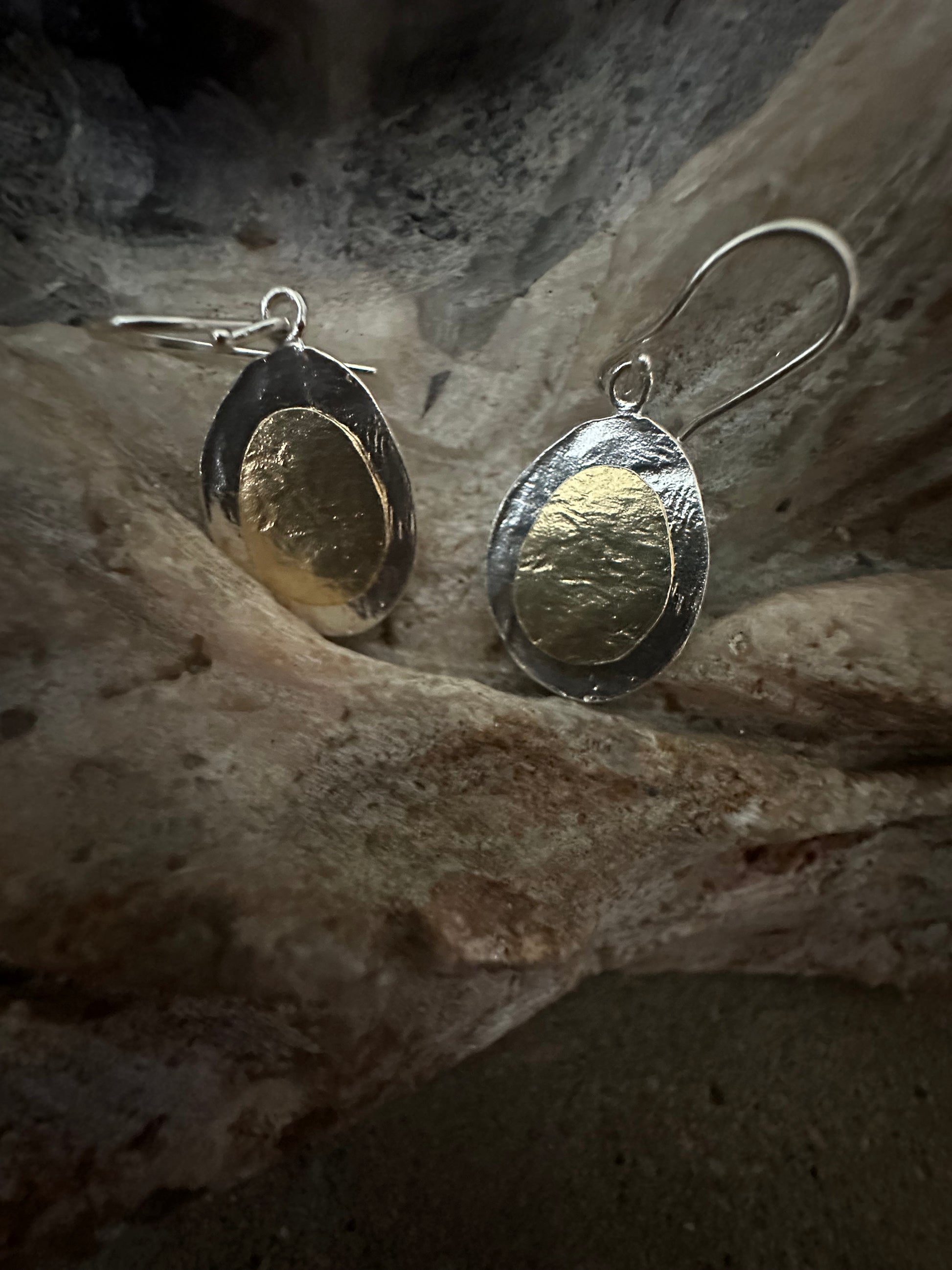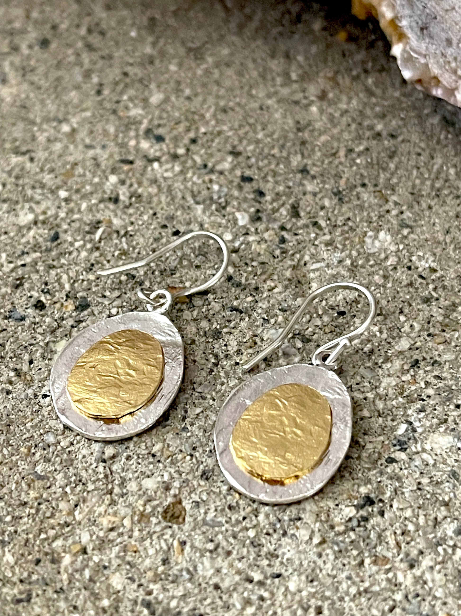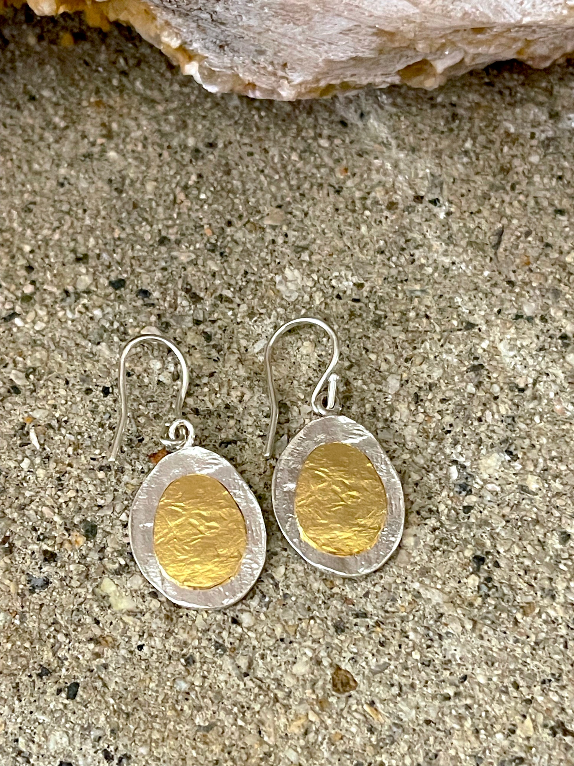 Gold plated oval on oval sterling sterling fish hook earrings.