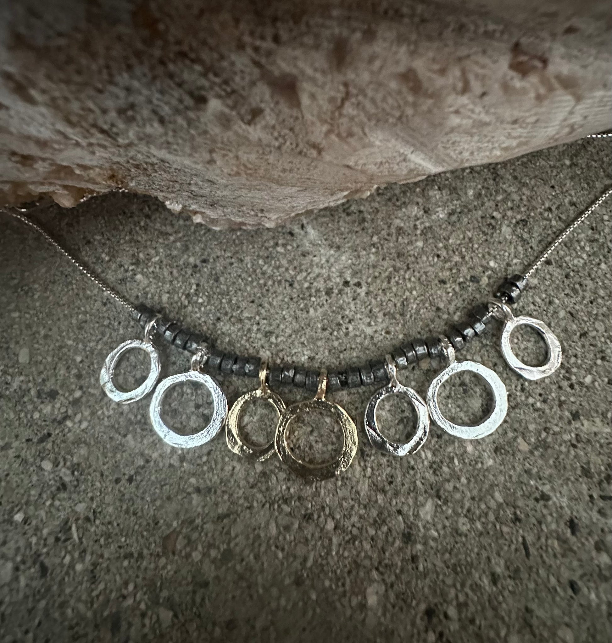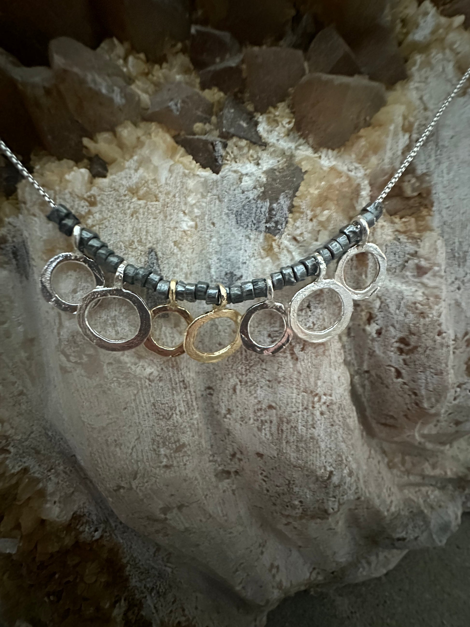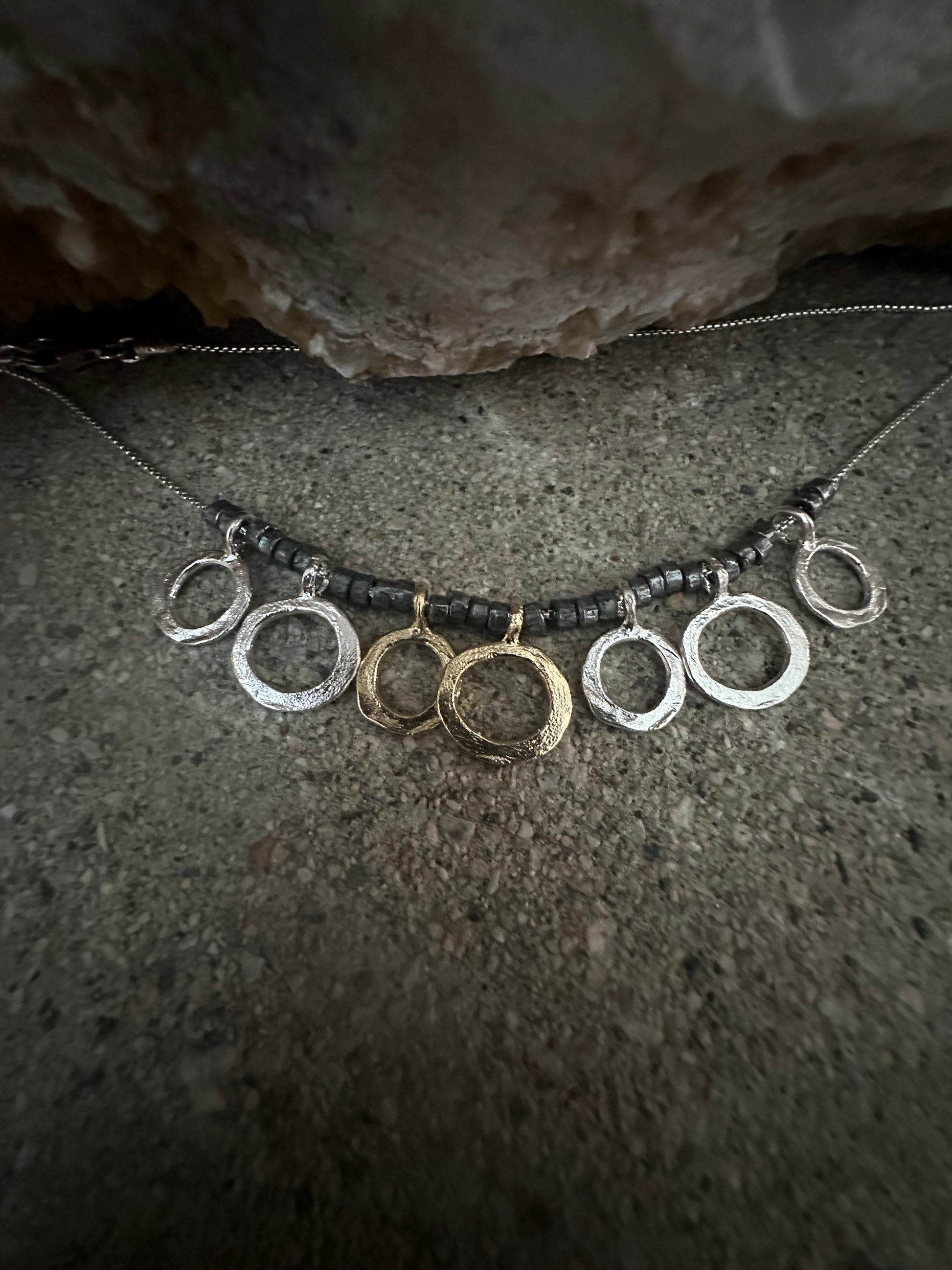 Gold Plated & Oxidized 7 Rounds with Beads Sterling Silver Necklace