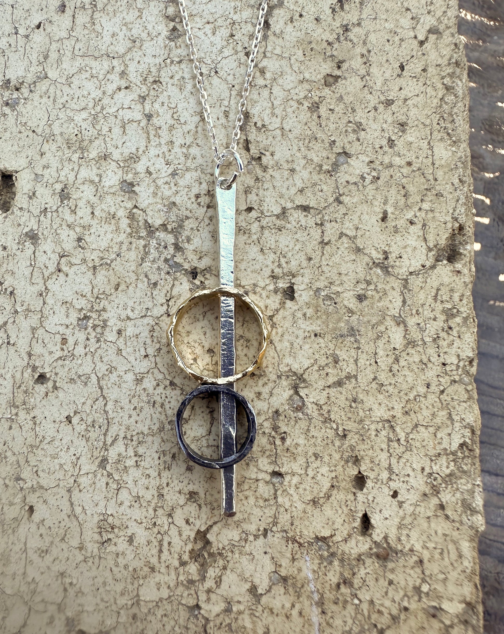 Gold Plated & Oxidized Loop on Sterling Necklace