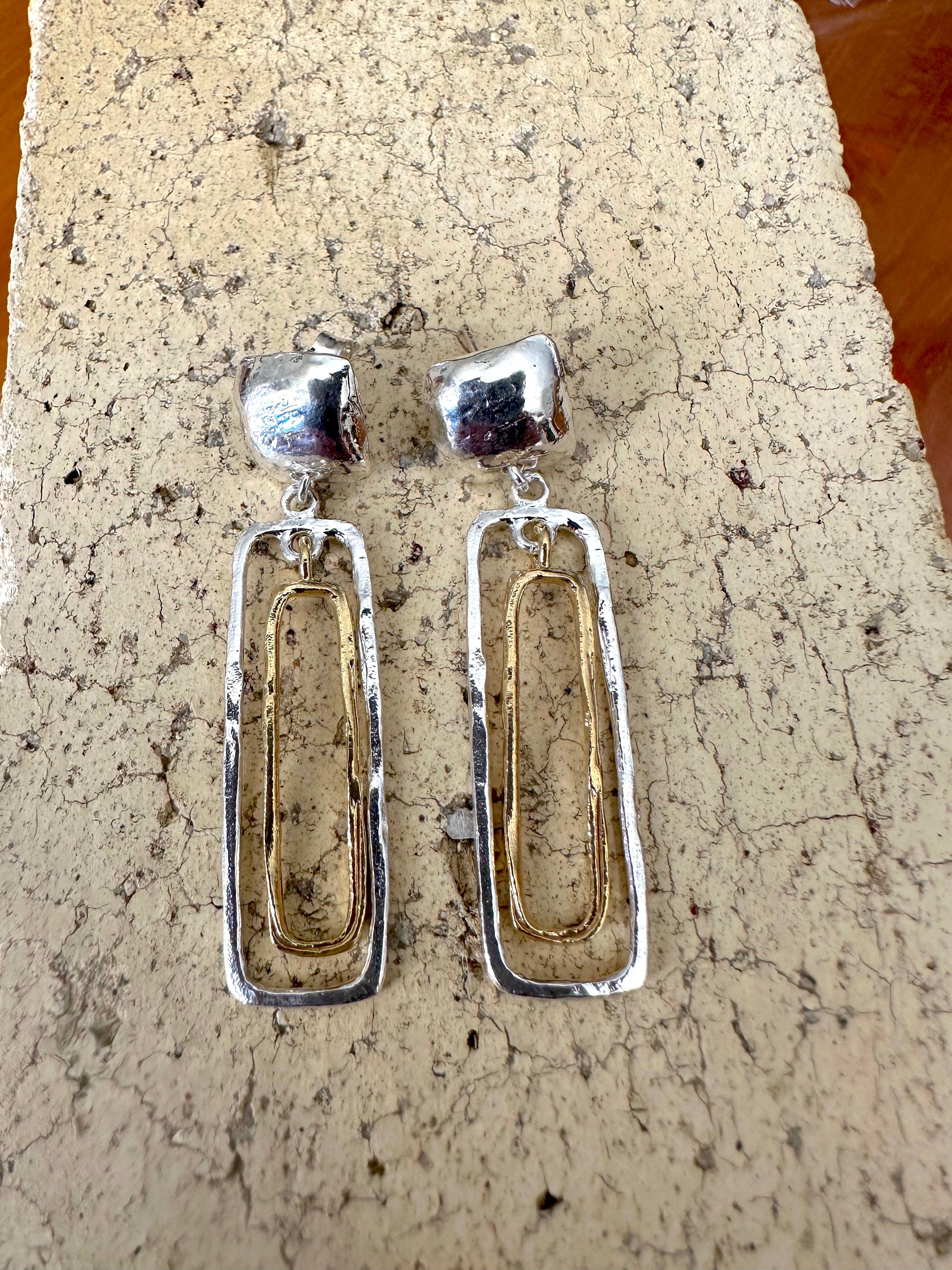 Gold & square sterling on top of rectangle post earrings.