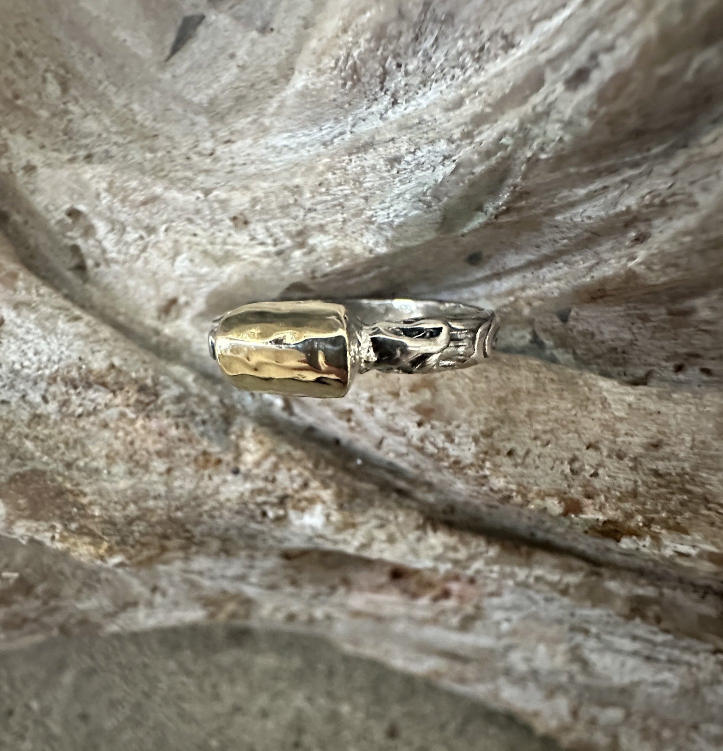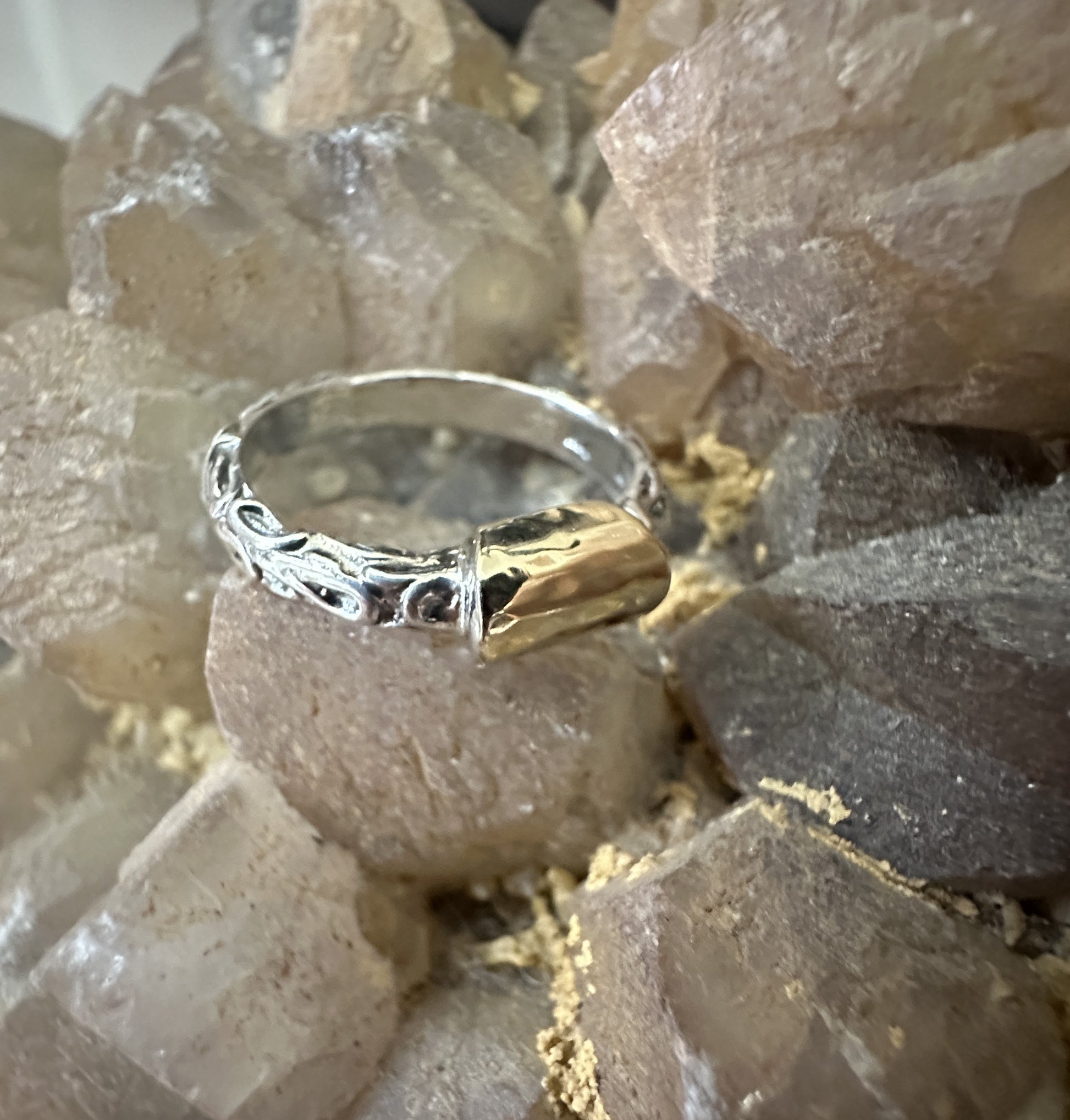 Solid Gold Bar On Decorative Sterling Silver Band Ring
