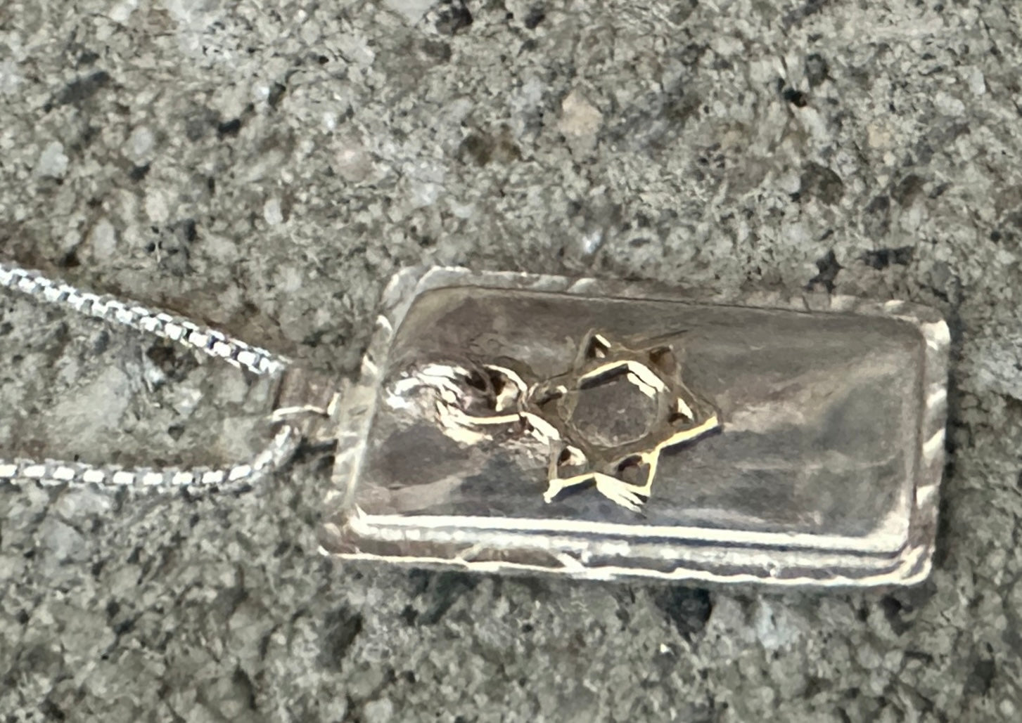 Swing Solid Gold Star of David on Sterling Silver disc on Sterling chain necklace