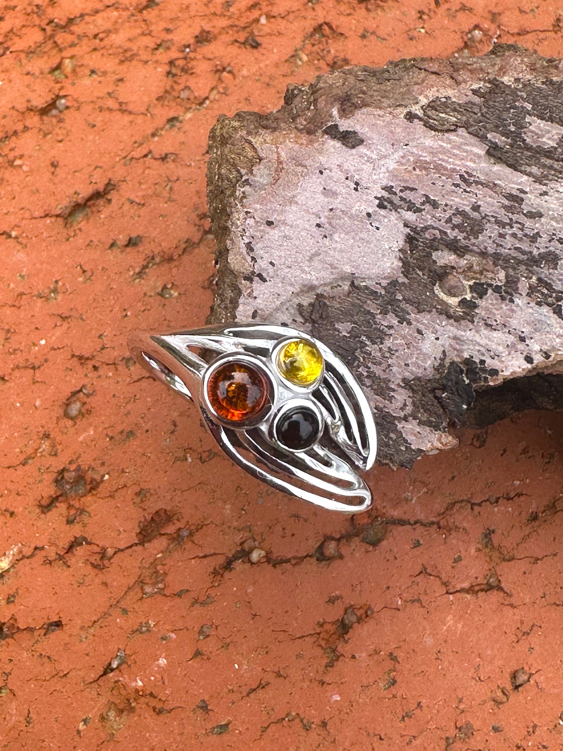 Amber Adjustable Sterling Silver Ring