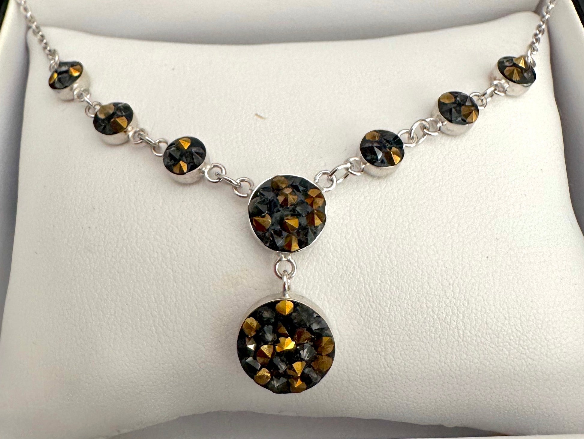Brown and gold 8 parts Austrian Crystal sterling silver necklace.