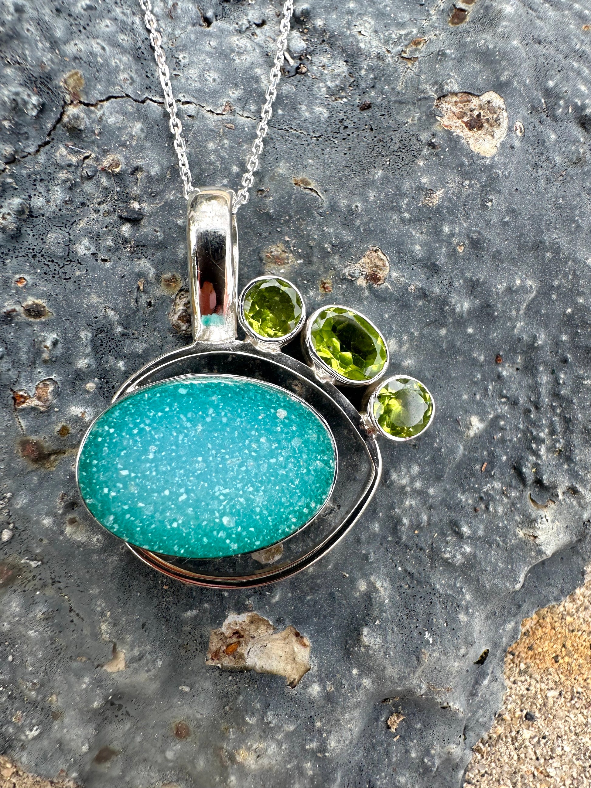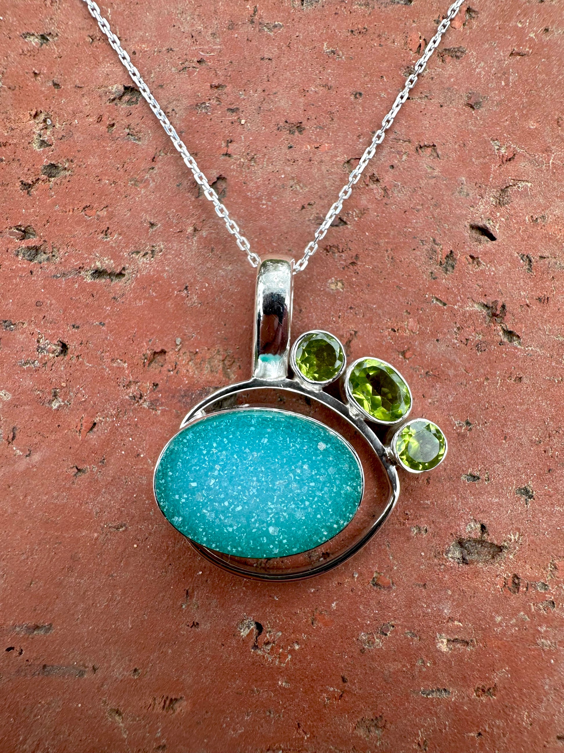 Green Druzy & Peridot Stone Sterling Silver Necklace