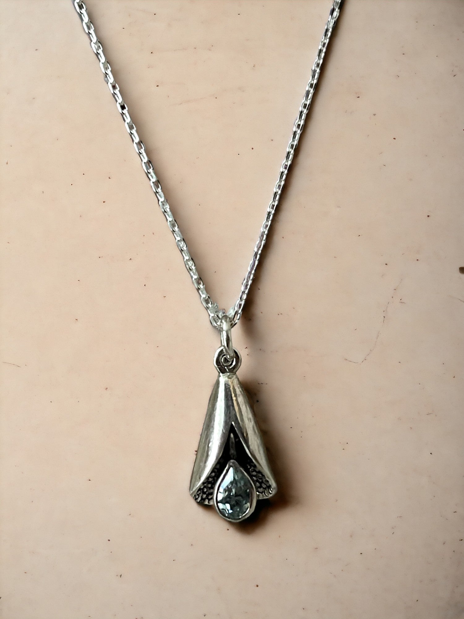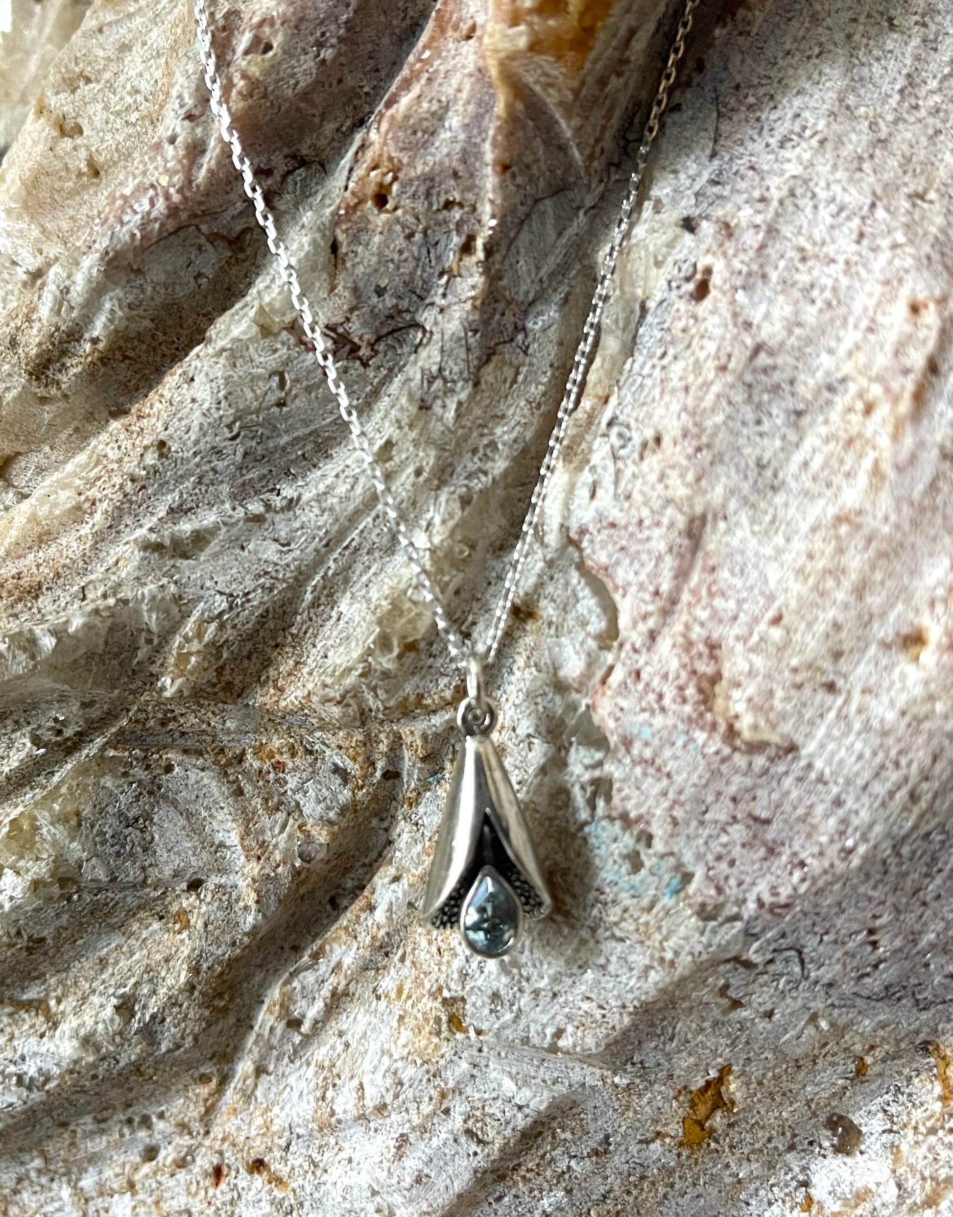 Blue Topaz Oxidized Leaf Sterling Silver Necklace