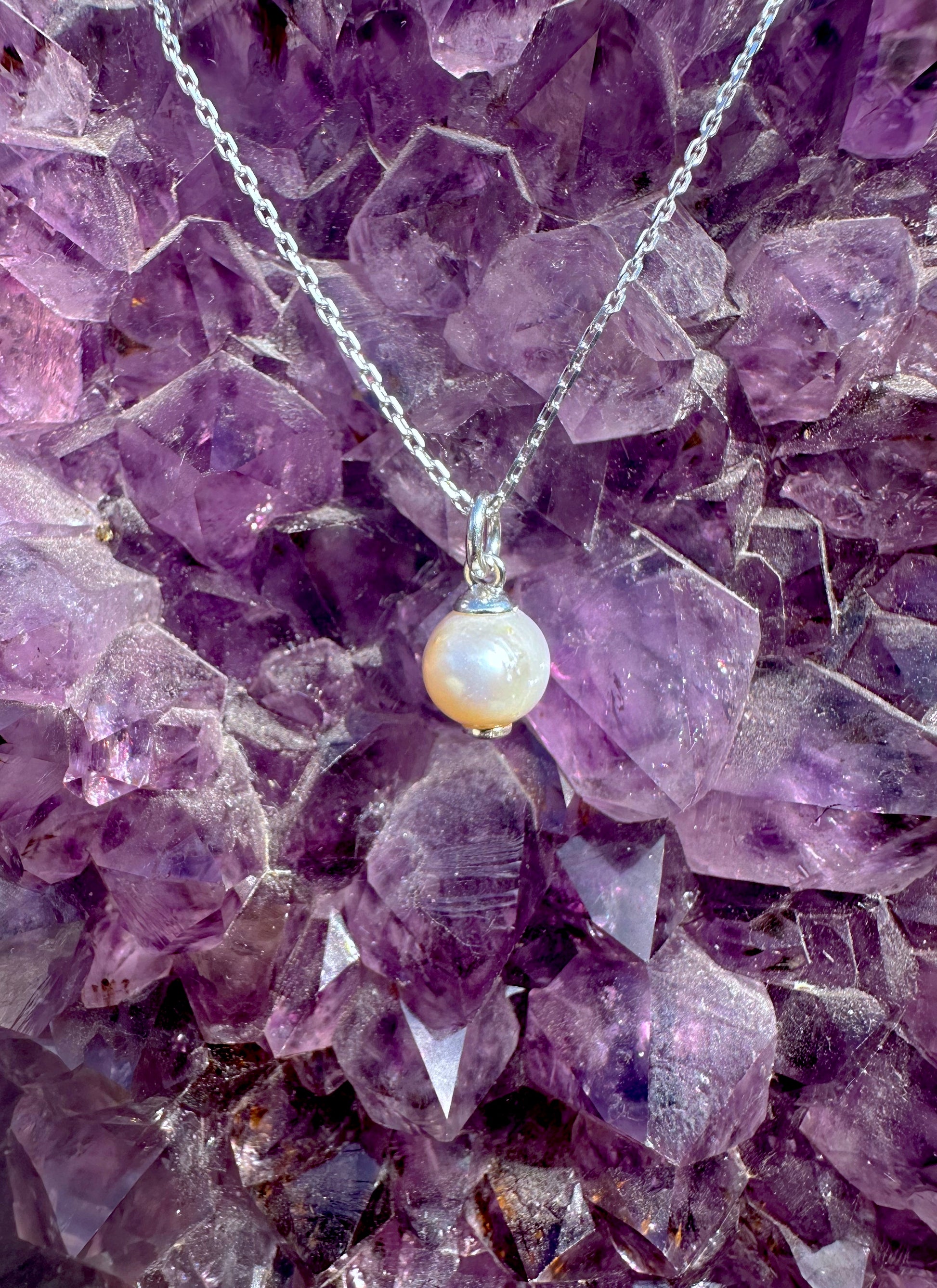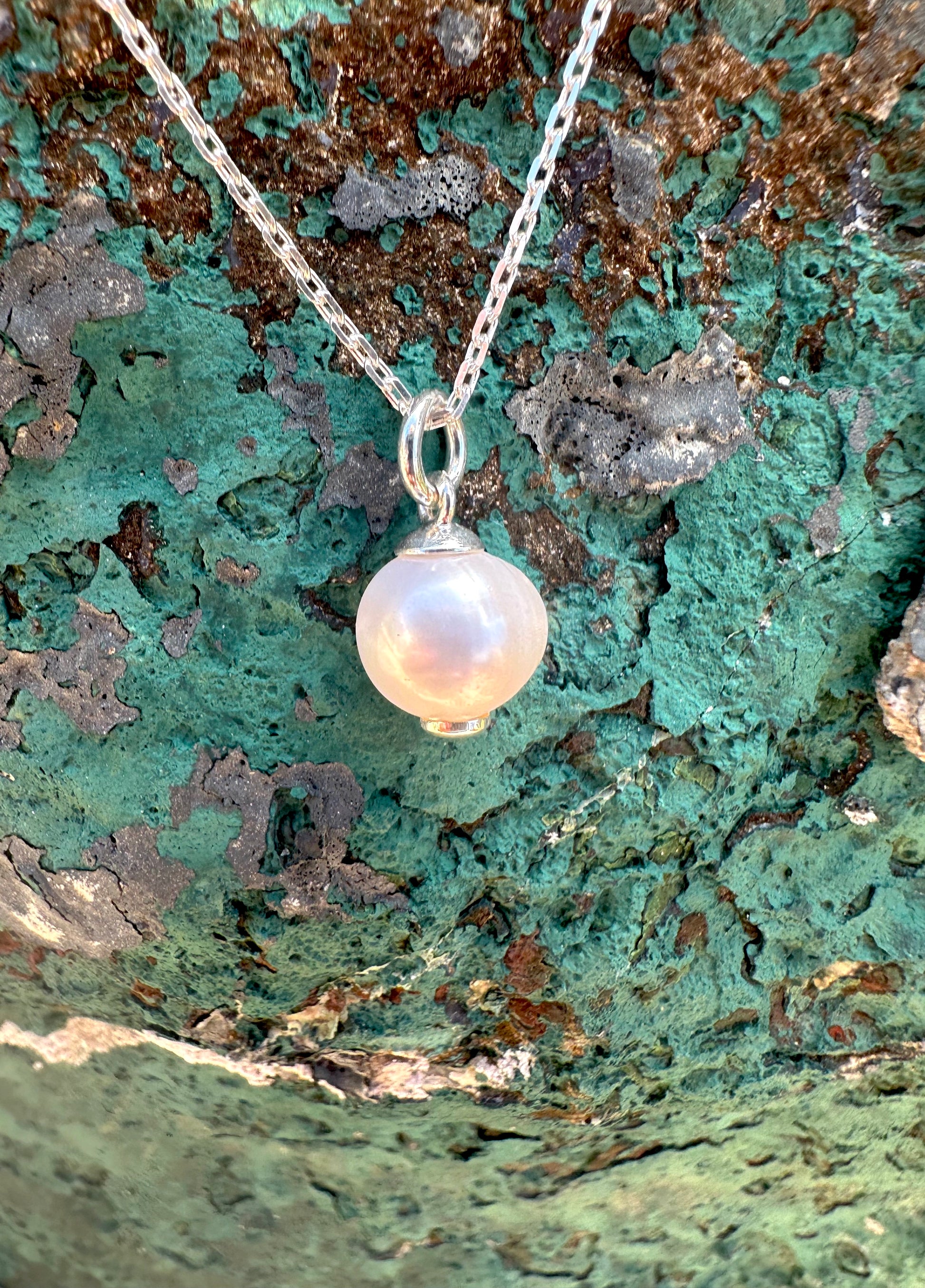 Sterling silver pearl pendant on chain.