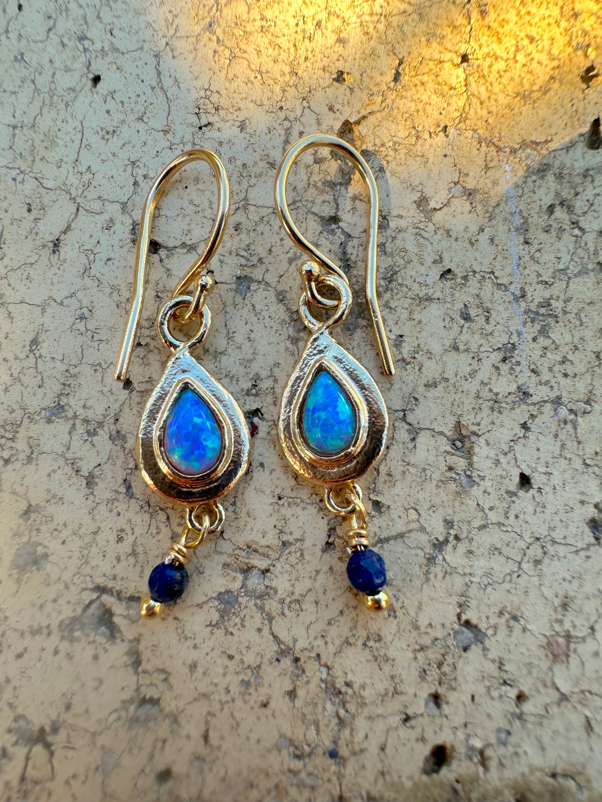 Teardrop Opal & Lapis Gold Plated over Sterling Earring