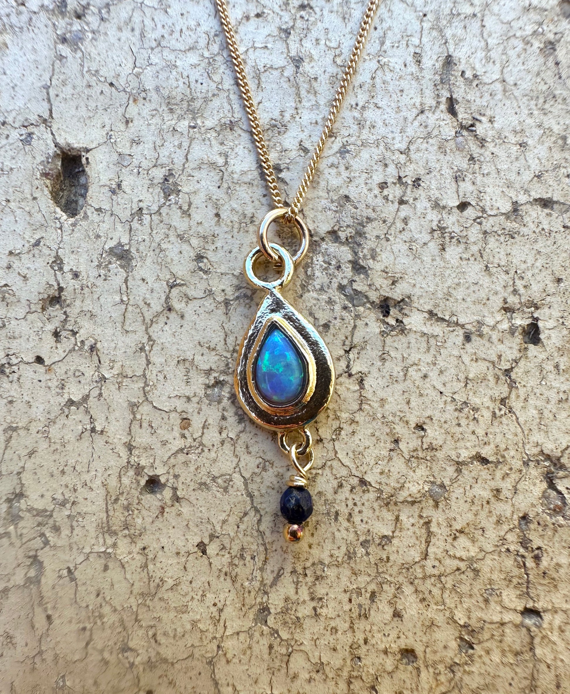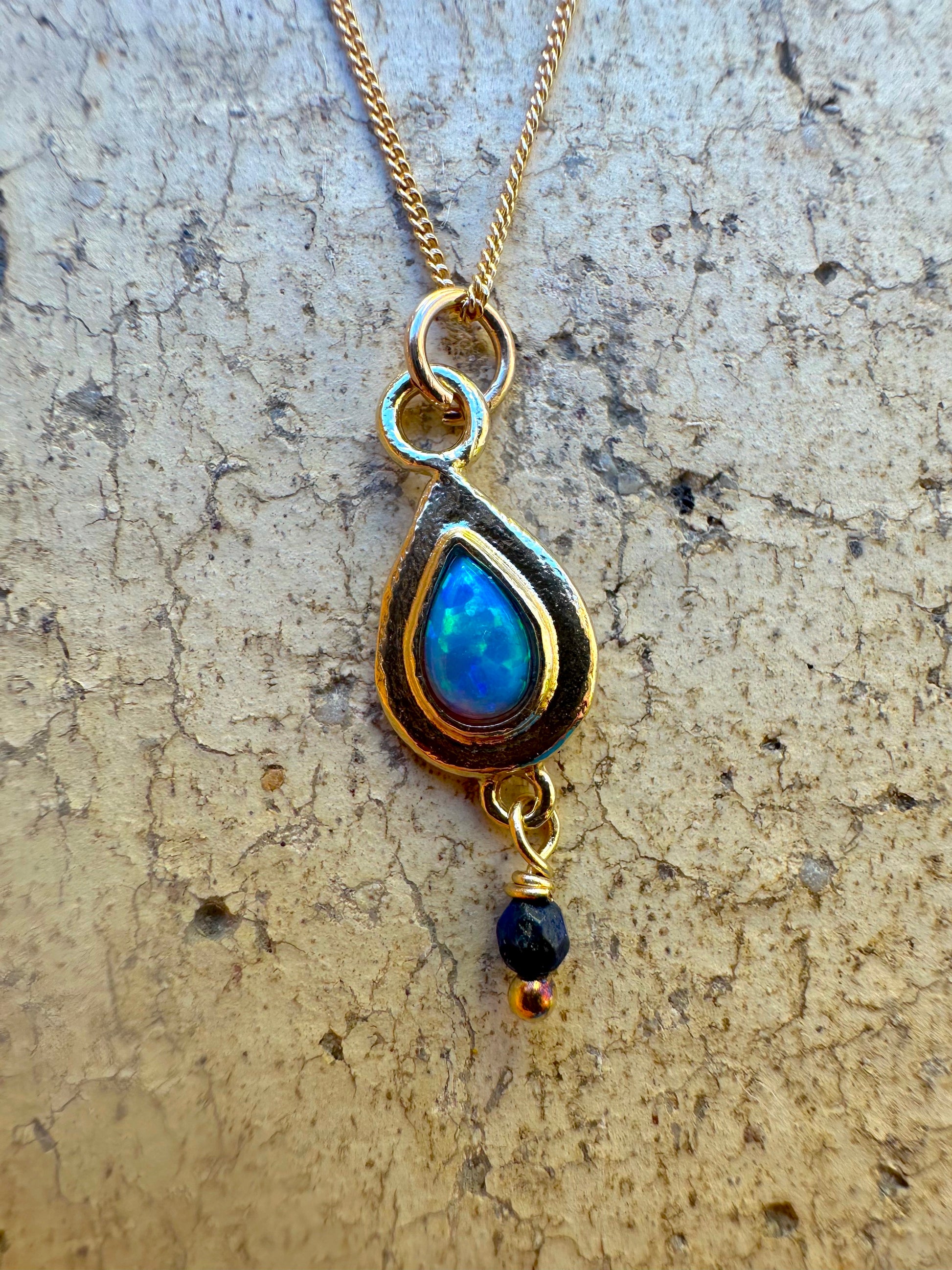 Teardrop opal & lapis gold plated over sterling pendant gold filled chain