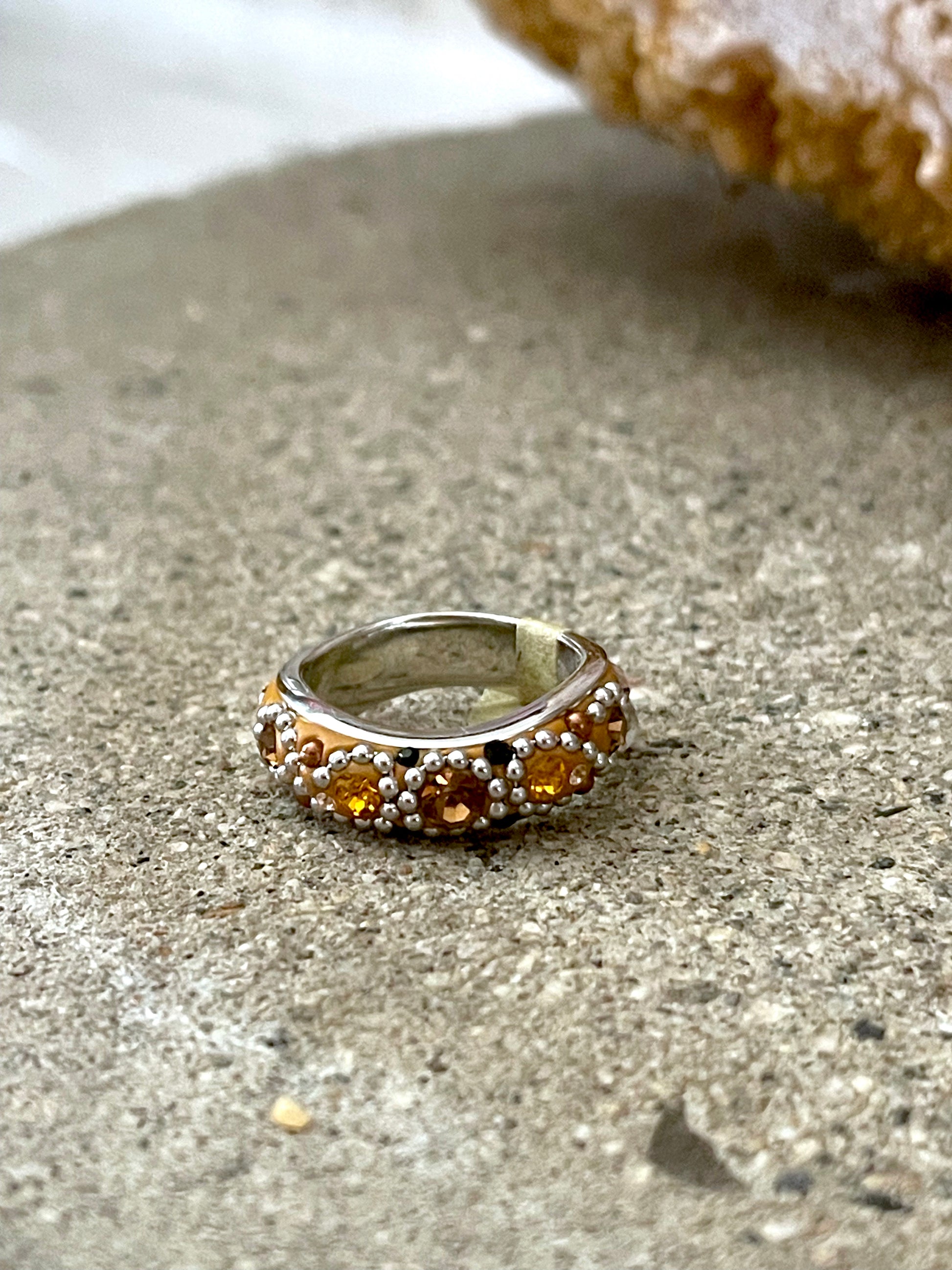 Warm Tan Colors Austrian Crystal Sterling Silver Ring